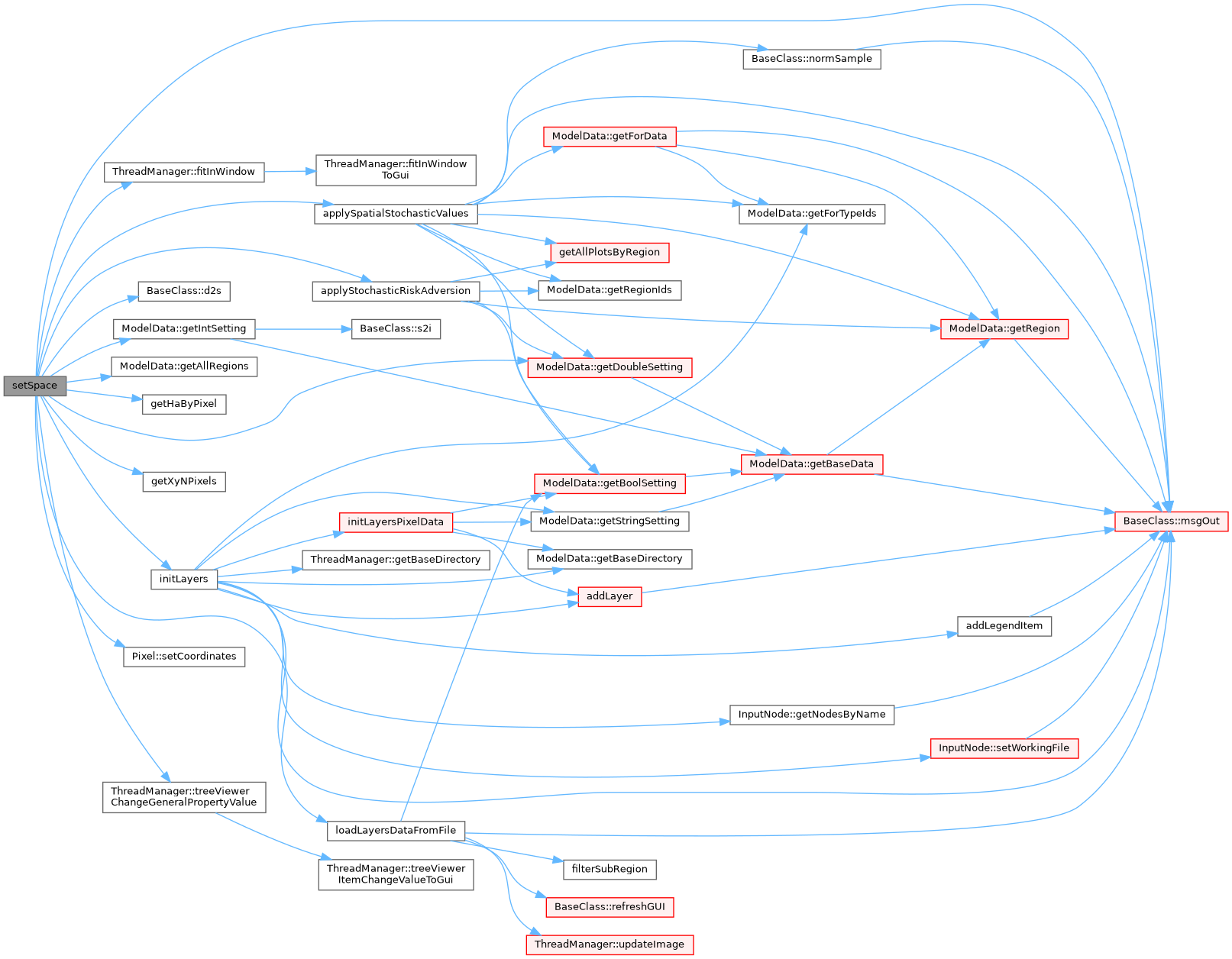 setSpace is called directly from the init system to setting the space environment in the model.